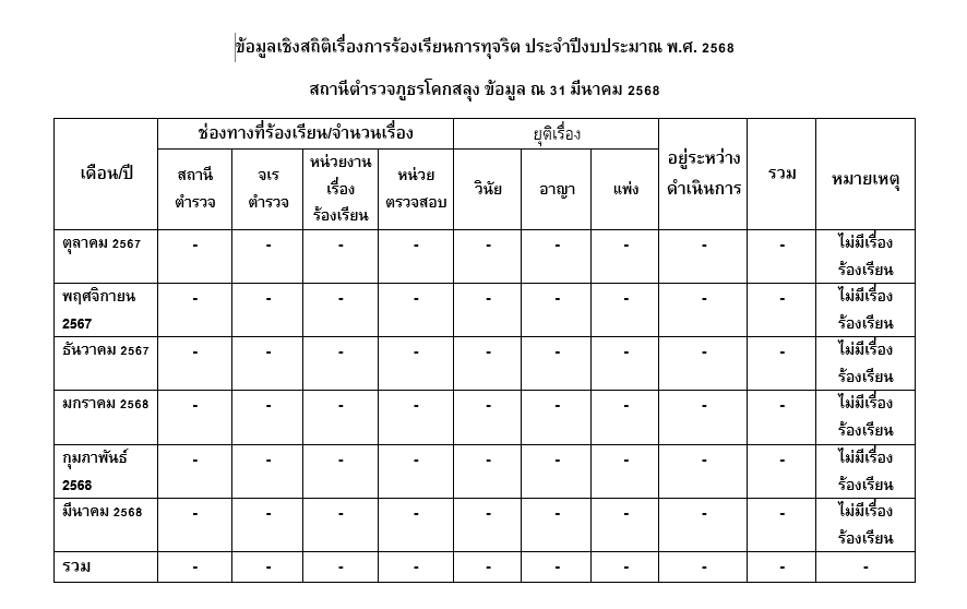 ข้อมูลสถิติเรื่องร้องเรียนการทุจริตและประพฤติมิชอบของเจ้าหน้าที่ของสถานีตำรวจ